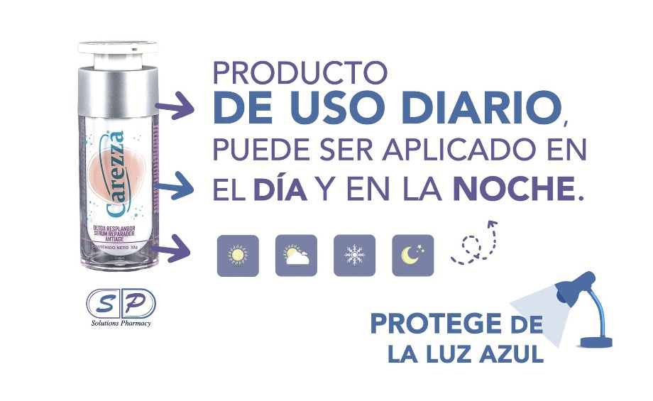 Con la aplicación de Detox Resplandor CAREZZA además de humectar la piel se reducen las líneas de expresión, brindando firmeza y logrando lucir una piel joven y saludable.